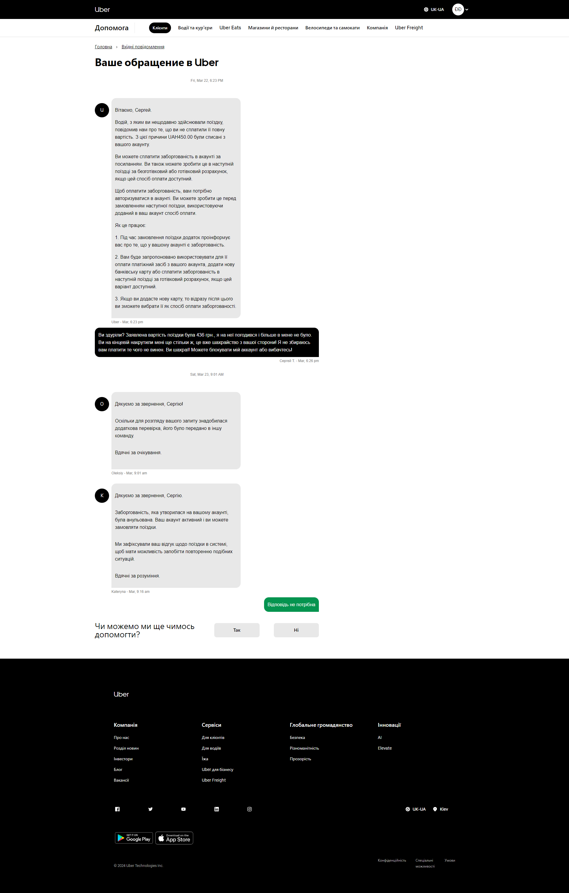 кстати засада с ценами, например уклон вечером в 20:50 часов в субботу обычную не праздничную, погода хорошая, день без тревог, писал шо у меня скидка и цена 390 грн за 16 км по Киеву, но в реальности никто просто не ехал и предлагало поднять цену, согласились аж на 500 грн, так что и с ночным тарифом похоже обман тоже и замануха, после 00:00 часов за этот же маршрут пишет около 300 грн, но как теперь понятно никто тупо не будет отзываться на заказ при этом мои предположения надо поднимать сумму до 2-3 тыс грн Мене теж це просто виводить з себе при чому так і в Bolt теж (Uber не користуюсь після сварки з ними - ТИК) |